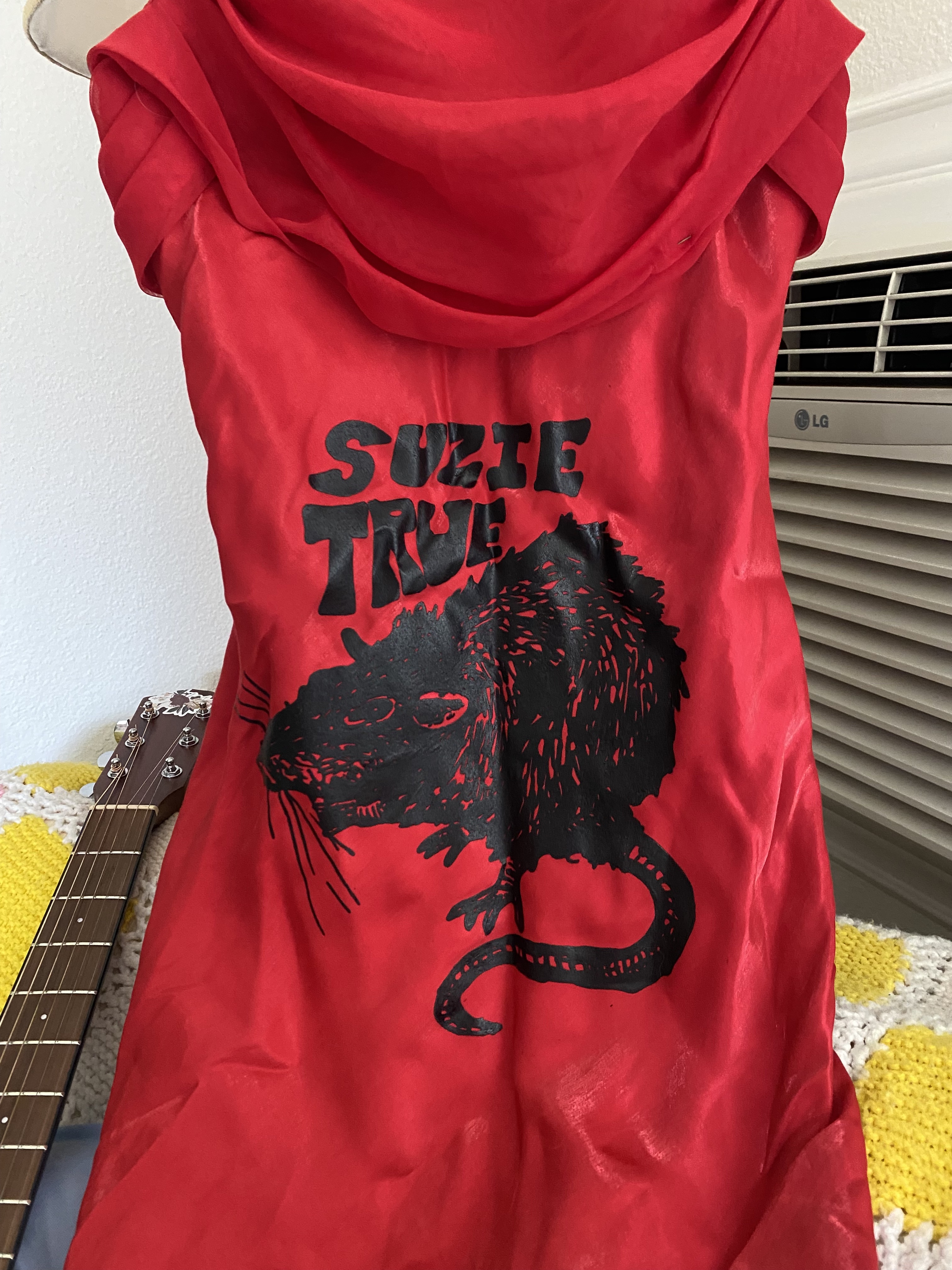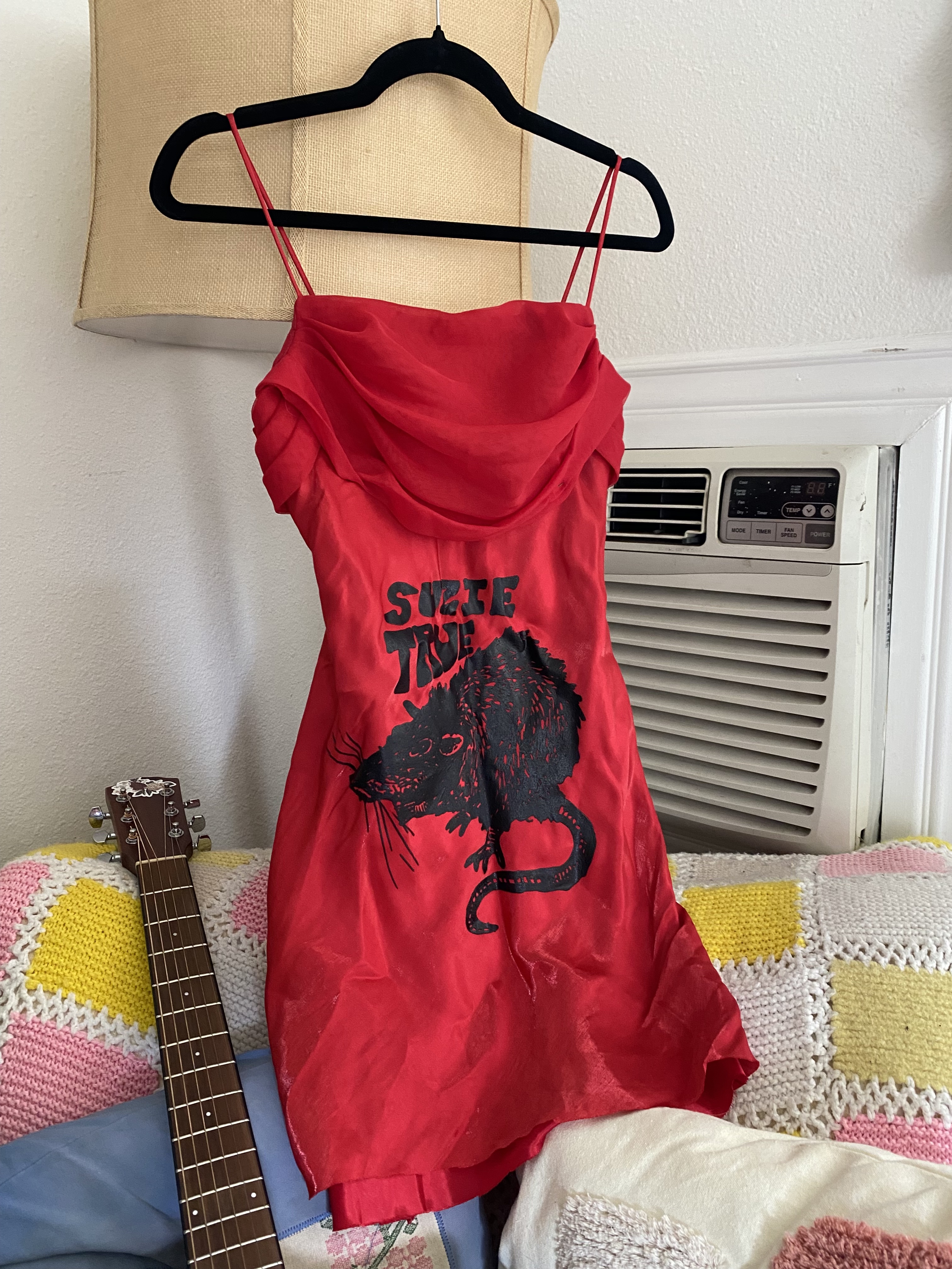 1 of 1! Size Extra Small upcycled Red Dress with the iconic rat logo screen printed on.